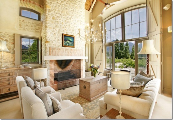 I realised with some shock over the weekend that it has been nearly 4 years since I have been home to South Africa. I don’t get homesick nearly as often as I used to but surprisingly the warm weather made me long for the familiarity of home. I am particularly missing the wide open spaces, the accent and the languages and of course the food! I’m indulging myself today and taking you on a tour around a villa situated in the heart of the South African wine route. If that spectacular view of the Simonsberg mountains doesn’t reel you in, then how about the spectacular pool, the Cape Dutch thatched roof, the beamed ceilings, the shutters, the kitchen… need I go on?